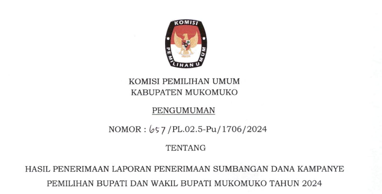 Hasil Rapat Pleno Terbuka Pemutakhiran Data Pemilih Berkelanjutan (PDPB) Triwulan III Kabupaten Mukomuko dengan rincian Data Pemilih Laki-laki 73.407, Perempuan 70.358 dengan Jumlah Keseluruhan 143.765 Pemilih.