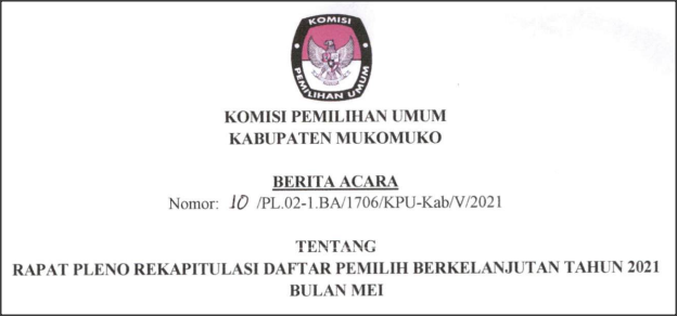Daftar Pemilih Berkelanjutan dengan jumlah sebanyak 125.527 (seratus dua puluh lima ribu lima ratus dua puluh tujuh)orang,  dengan rincian pemilih laki-laki sebanyak 64.140 (enam puluh empat ribu seratus empat puluh) orang dan pemilih perempuan sebanyak 61.387 (enam puluh satu ribu tiga ratus delapan puluh tujuh) yang tersebar di 15 (lima belas) kecamatan. Selengkapnya dapat di download melalui link dibawah ini : Pemilih Berkelanjutan Bulan Mei 2021