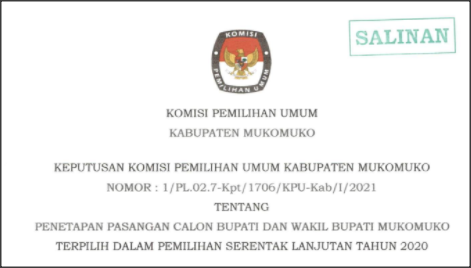 Berikut disampaikan Hasil Penerimaan Laporan Hasil Penerimaan Sumbangan Dana Kampanye (LPSDK) Peserta Pemilihan Bupati dan Wakil Bupati Mukomuko Tahun 2020 dalam format pdf. Dokumen dapat di baca dan di download melalui link dibawah ini : Hasil Penerimaan Laporan Penerimaan Sumbangan Dana Kampanye (LPSDK) Peserta Pemilihan Bupati dan Wakil Bupati Mukomuko Tahun 2020